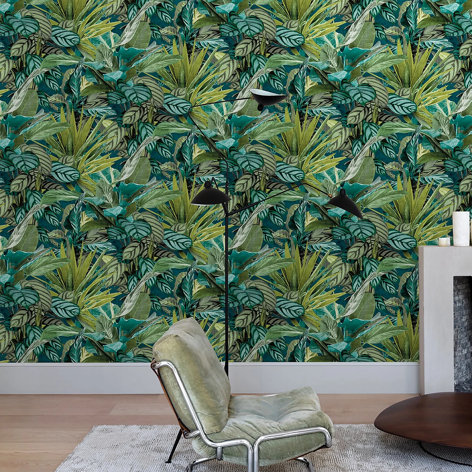 This statement tropical wallpaper uses bold photographic foliage to bring the depths of a tropical rainforest to your walls. It is bang on trend and is sure to give any room a high-end finish.