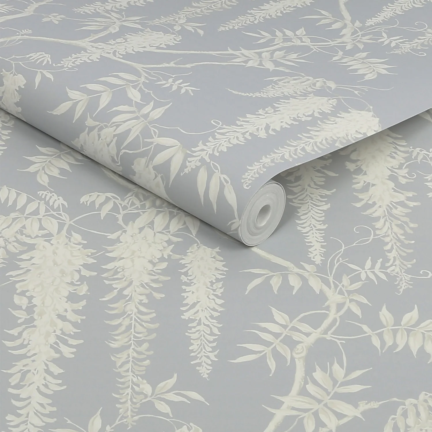 Wisteria trails is an elegant floral wallpaper, with a soft grey backdrop laced with delicate wisteria branches. This wallpaper is bound to compliment any room, whilst also being a stunning feature. Printed on a matt paper this stunning design has a luxurious finish whilst also being paste the wall making this wallpaper easy to hang.
