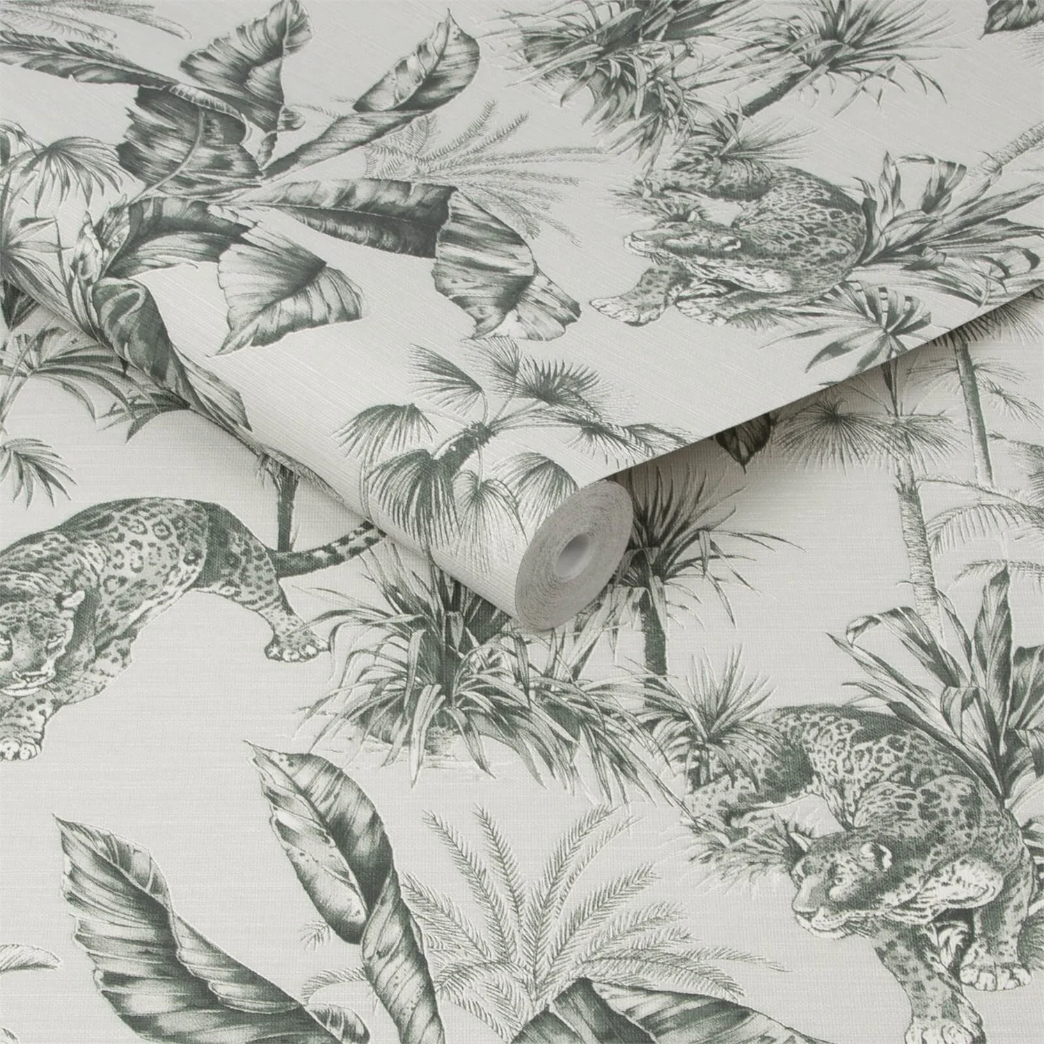 Intricately hand drawn, this jungle themed wallpaper features a majestic leopard and beautiful palms. The subtle texture adds a luxury finish to the Zanzibar wallpaper.